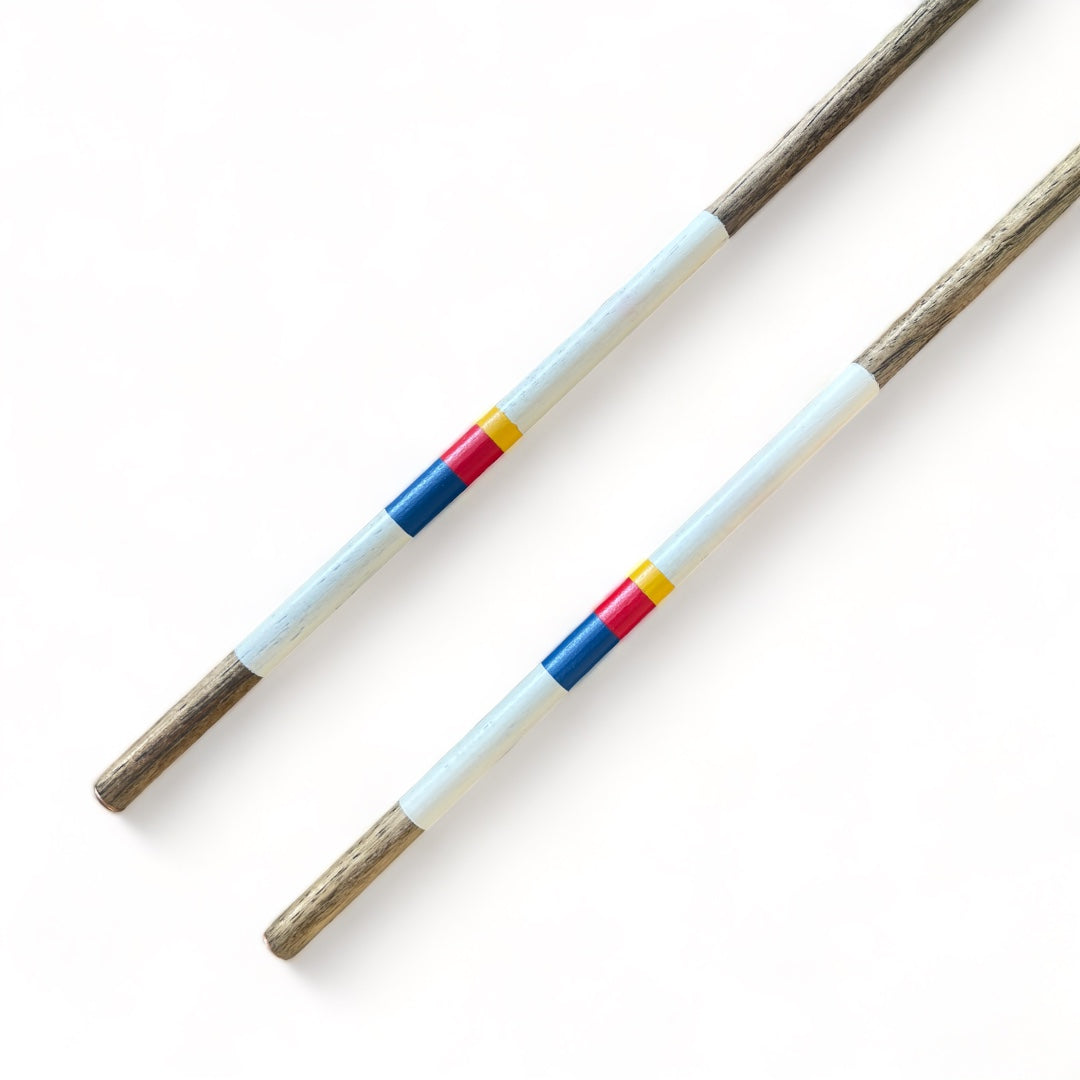 The "Apres70's" is a non-custom golf alignment stick with Blue | White | Red | Yellow bands.