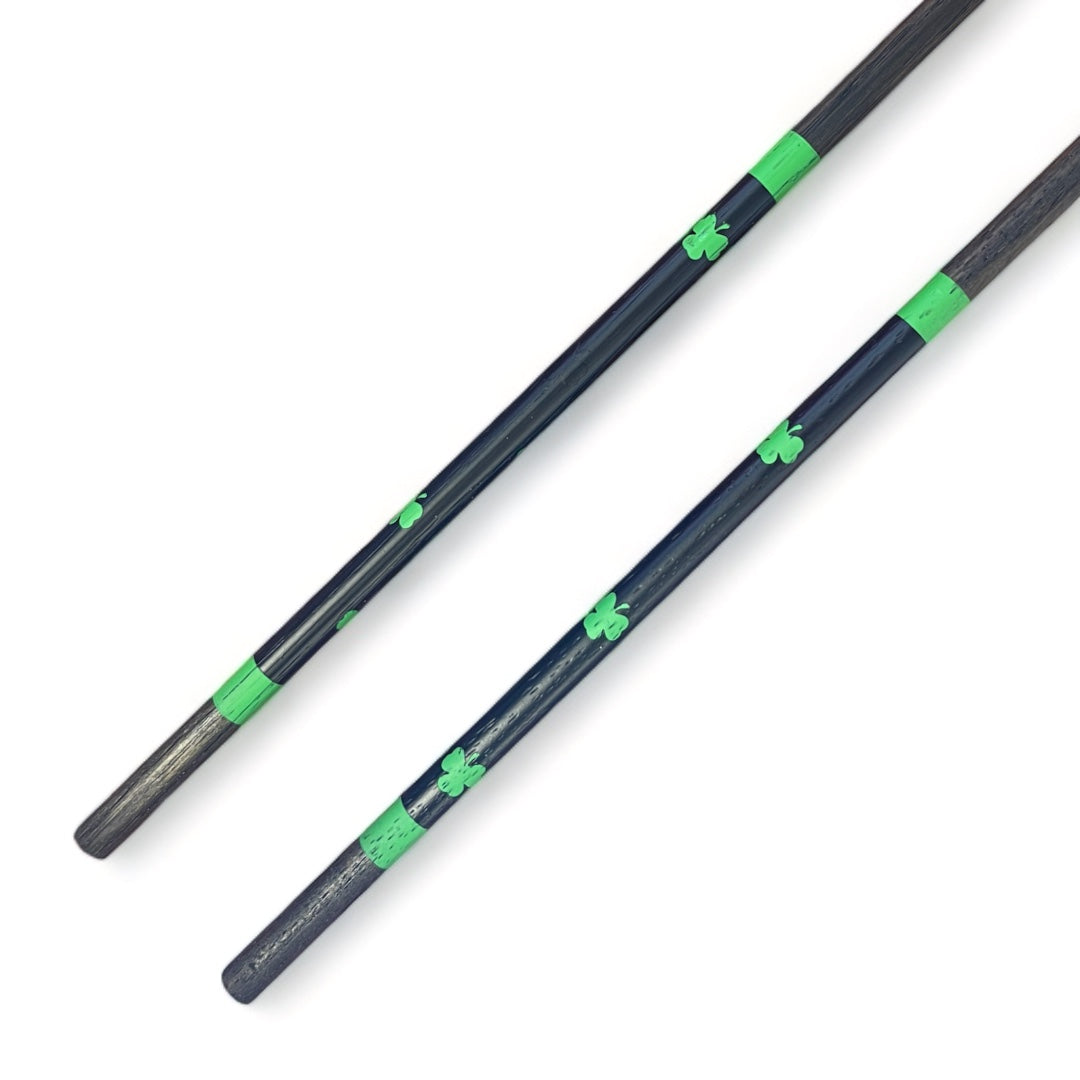 The "Black Mass" is a non-custom golf alignment stick with Green Shamrock outlines with a Black base. These sticks are stained Black.