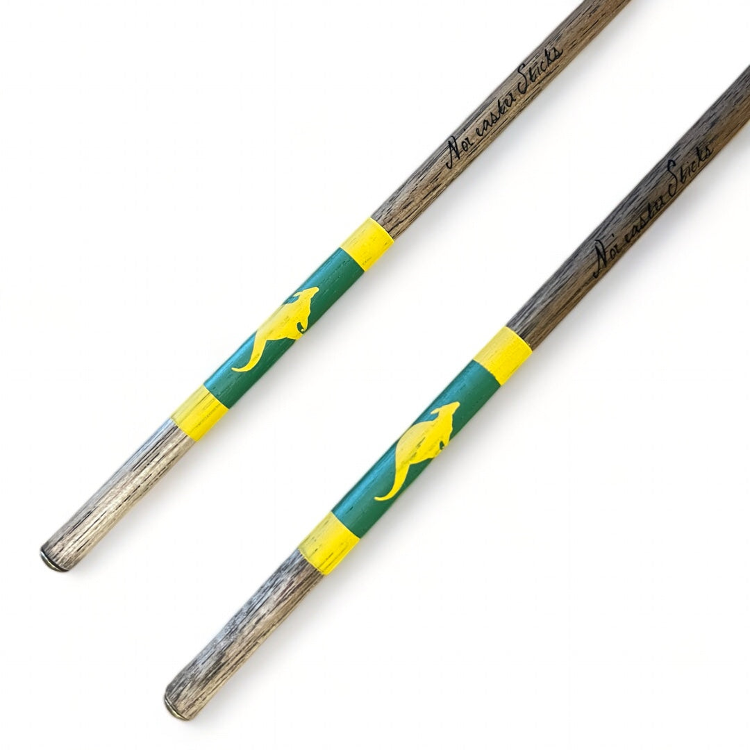 The "Raygun" is a non-custom golf alignment stick with a Yellow Kangaroo outline, and a Green base.