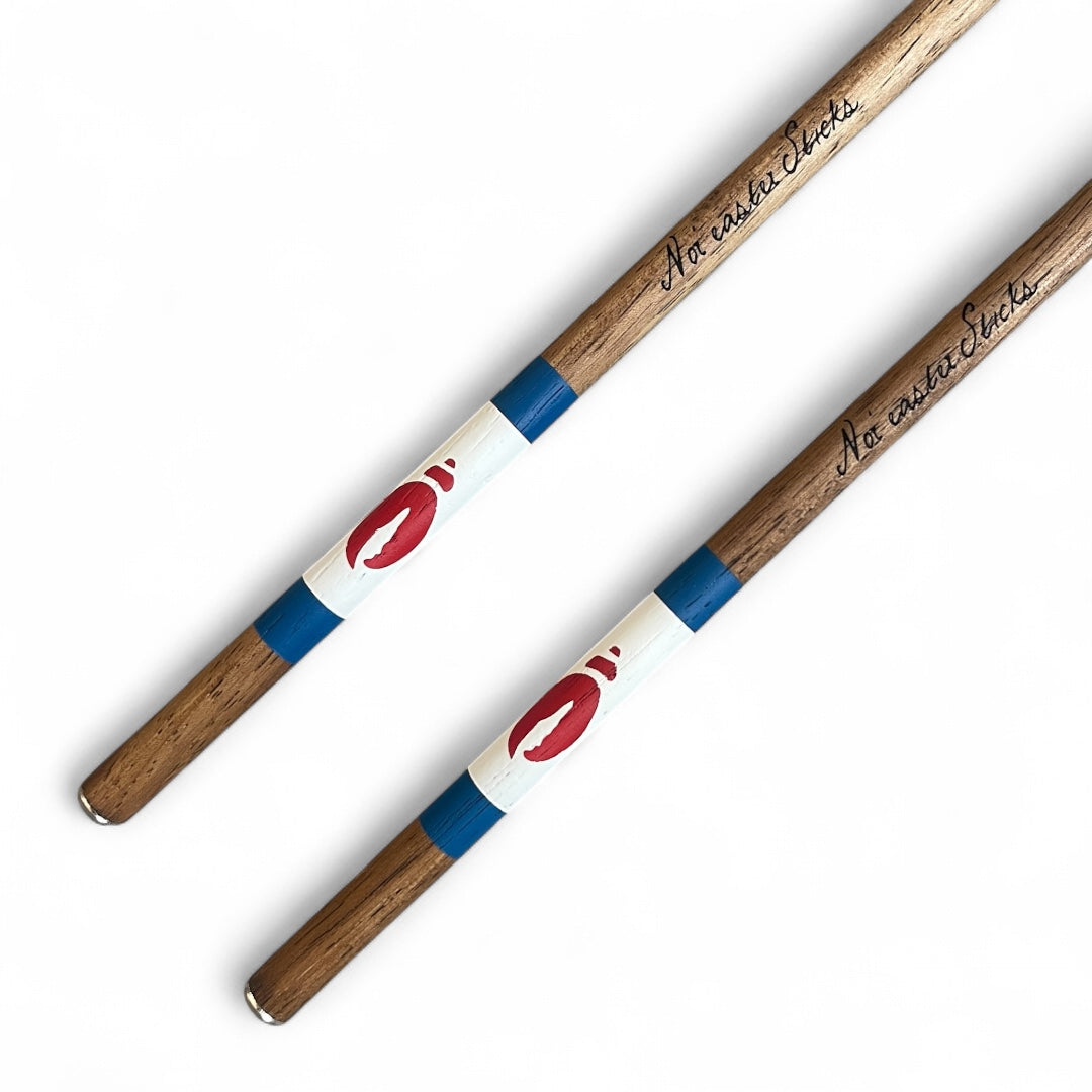 The "Lobstah' #2" is a non-custom golf alignment stick with Red "Lobster" outlines, Navy Blue rings and a White base.