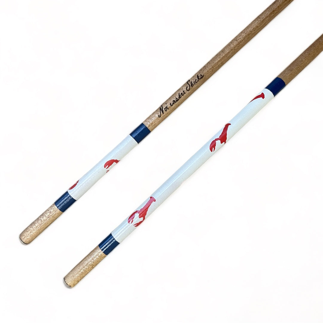 The "Lobstah' #1" is a non-custom golf alignment stick with Red "Lobster" outlines, Navy Blue rings and a White base.