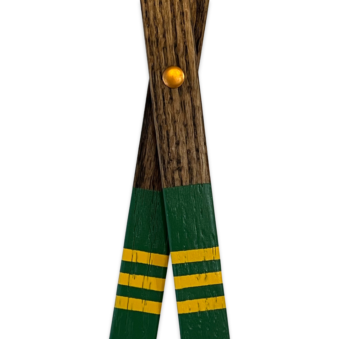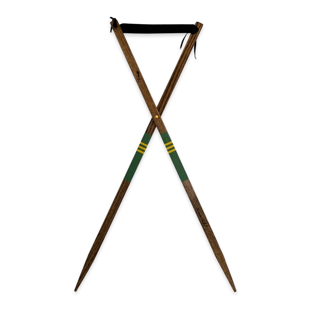 The Trestle Slings or Trestle Sticks are a non-custom golf bag stand with Green & Yellow bands.