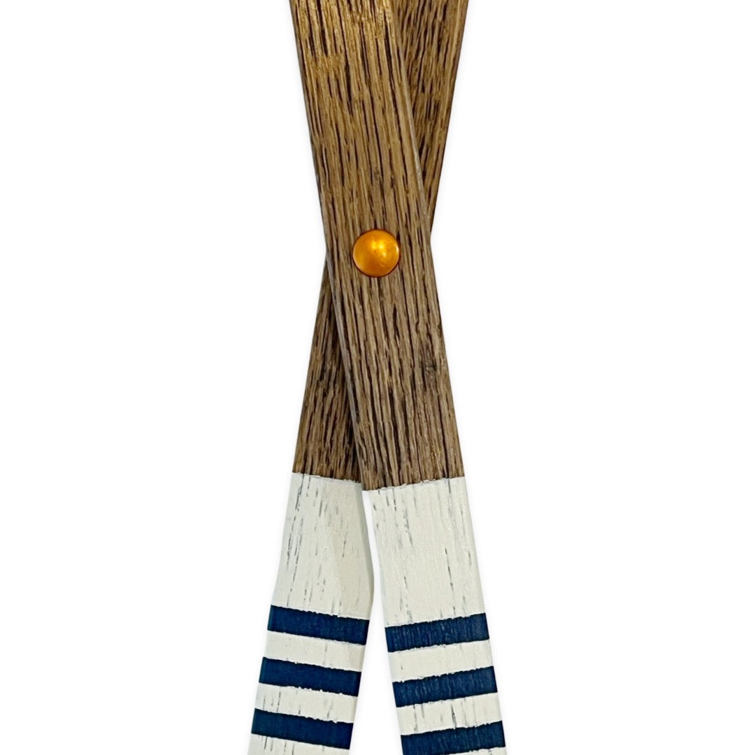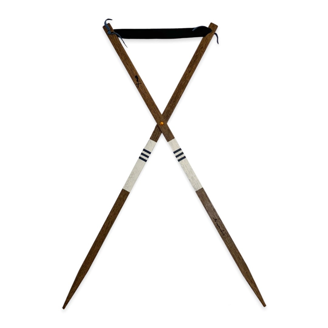 The Trestle Slings or Trestle Sticks are a non-custom golf bag stand with White & Blue bands.