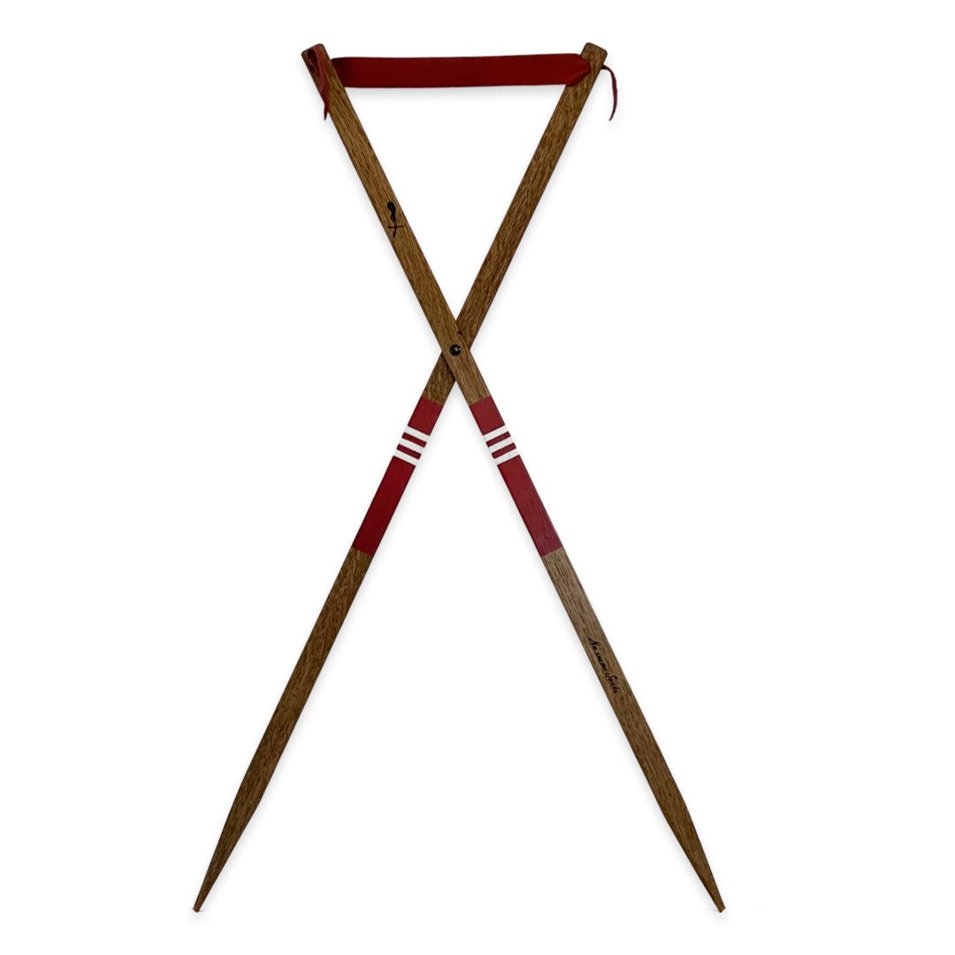 The Trestle Slings or Trestle Sticks are a non-custom golf bag stand Maroon & White bands.