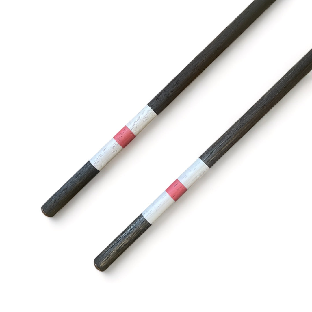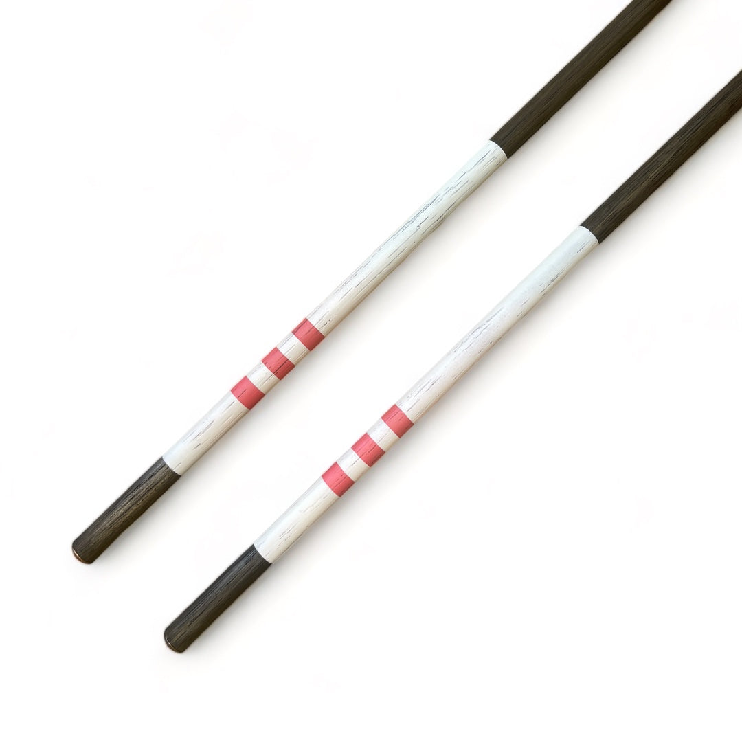 The "Wampanoags" is a non-custom golf alignment stick with White & Nantucket Red bands. These sticks are stained Black.